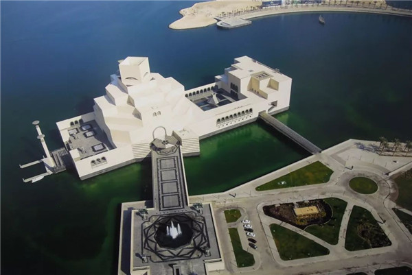 與日本的美秀美術(shù)館一樣,博物館的選址由貝聿銘先生來定。在中東,除了一望無際的沙漠,還有充足的海水和陽光,濱海大道、波斯灣邊便有這三樣得天獨(dú)厚的自然優(yōu)勢。為了創(chuàng)造一座立于純凈畫布上作品,且不被后來高樓大廈掩蓋其光芒,多哈政府開始填海,為博物館打下地基。