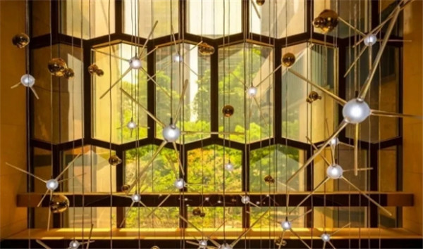 過廊內(nèi)的裝飾燈具來自全球頂級燈具的捷克Lasvit品牌,暖蜜色的玻璃窗,搭配同為暖色調(diào)的點(diǎn)狀光源,在提升空間奢華氣質(zhì)的同時(shí),使從公共空間過渡到私密空間的區(qū)域更加溫馨、舒適。