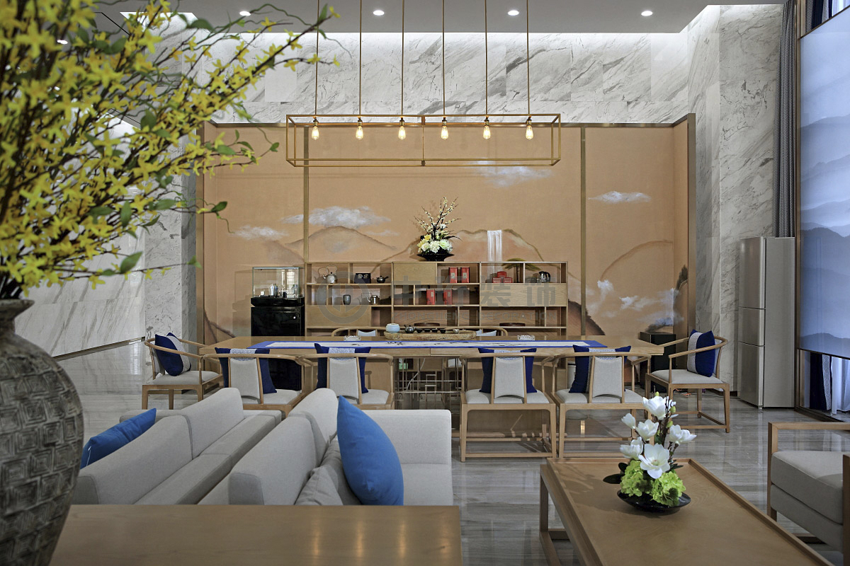 新中式具有內(nèi)蘊(yùn)的風(fēng)格,為了營造舒緩的意境,洽談區(qū)的整體設(shè)計(jì)與裝飾用到的沙發(fā),顏色仍然體現(xiàn)著中式的韻味與現(xiàn)代的簡(jiǎn)約,使整個(gè)室內(nèi)空間透著一股家的溫馨和舒適感。